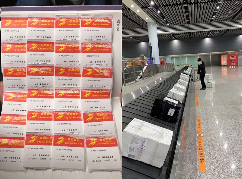 2月5日,首架貨機(jī)從西班牙馬德里(CA1026次航班)出發(fā),于當(dāng)天早上7:40分抵達(dá)了河南新鄭國(guó)際機(jī)場(chǎng)。在這架飛機(jī)上,載滿了口罩、護(hù)目鏡、防護(hù)服、消毒液等疫情急需物資,總計(jì)18個(gè)托盤,約5噸,371336件,總價(jià)值人民幣377450元。