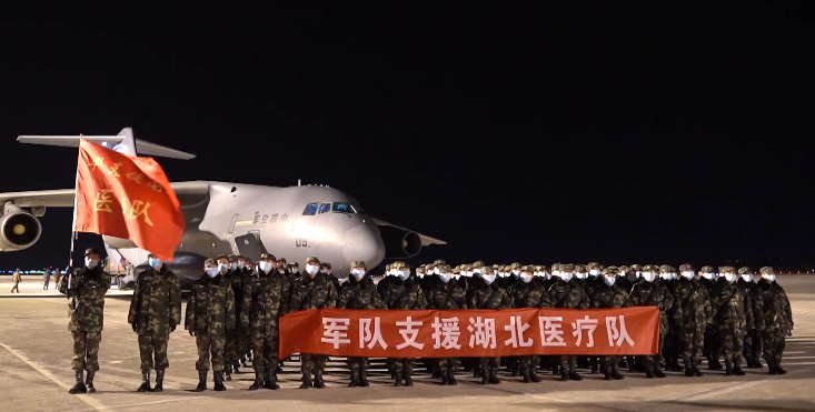 2月17日凌晨,空軍出動運-20、伊爾-76、運-9共3型8架運輸機,分別從上海虹橋等7個機場起飛,第四次向武漢空運676名軍隊支援湖北醫(yī)療隊隊員和物資。
