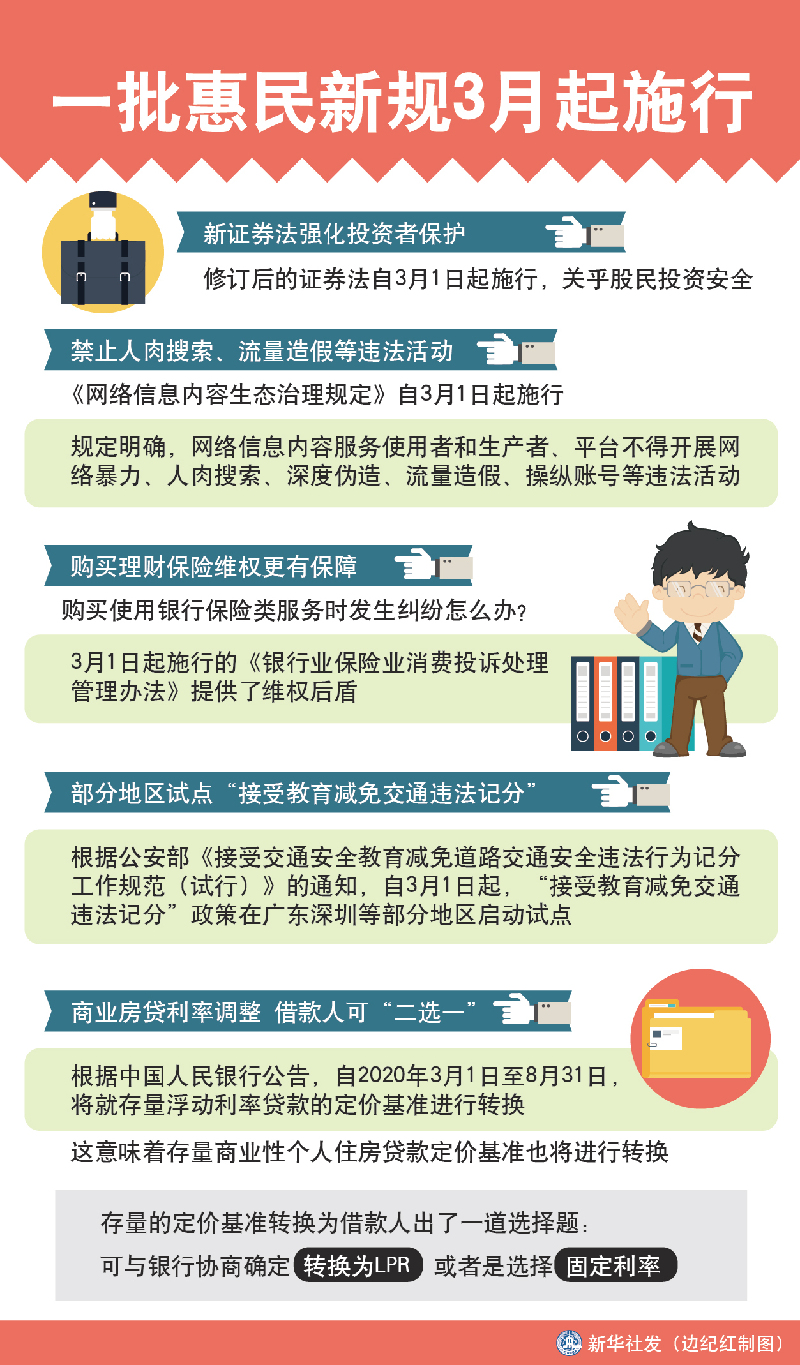 新華社北京2月28日電 題:證券投資、網(wǎng)絡(luò)治理、房貸利率……一批惠民新規(guī)3月起施行