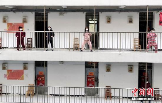 29日中午,作為康復(fù)期患者隔離點(diǎn)的武漢軟件工程職業(yè)學(xué)院5棟宿舍樓響起了音樂,人們戴上口罩走出房門,站在“口”字型走廊上練起八段錦和太極拳。