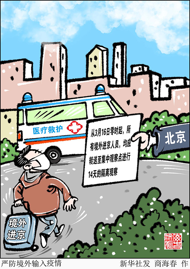 新華社北京3月15日電(記者魏夢佳)北京市人民政府副秘書長陳蓓15日表示,為有效防范境外疫情的輸入和擴散,從3月16日零時起,所有境外進京人員,均應(yīng)轉(zhuǎn)送至集中觀察點進行14天的隔離觀察。集中觀察點將配置專業(yè)醫(yī)護和工作人員,定期開展健康監(jiān)測,發(fā)現(xiàn)問題及時處理,使回國人員更安全、家人更放心。