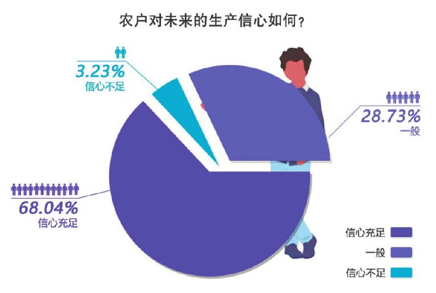 問(wèn)卷調(diào)查顯示,68.04%的農(nóng)戶表示對(duì)糧食生產(chǎn)未來(lái)“信心充足”,28.73%的農(nóng)戶表示“信心一般”,信心不足的僅占3.23%。(見(jiàn)圖2)