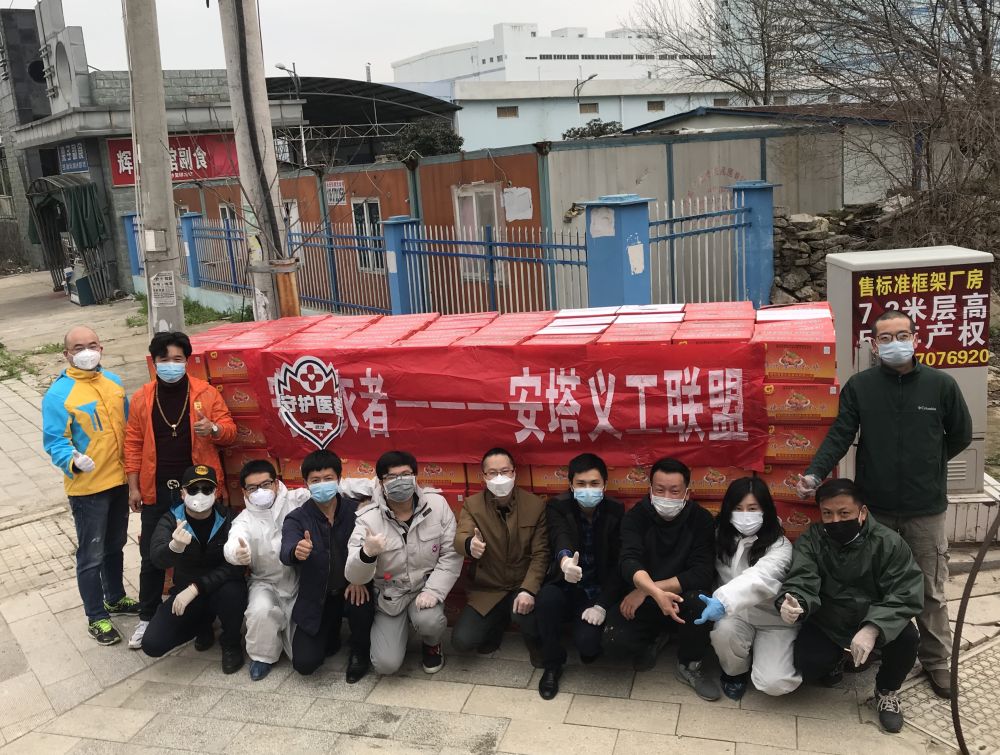 到現(xiàn)在也不知道這些志同道合的伙伴們都是什么人,大家都在埋頭按指令干活,無(wú)暇寒暄。隊(duì)里有幾個(gè)年輕人,玩命地奔忙在各個(gè)貨運(yùn)倉(cāng)庫(kù)。就像那天的40噸酒精,完全靠他們扛上扛下,再送到一個(gè)個(gè)物資告急的機(jī)構(gòu)手中。
