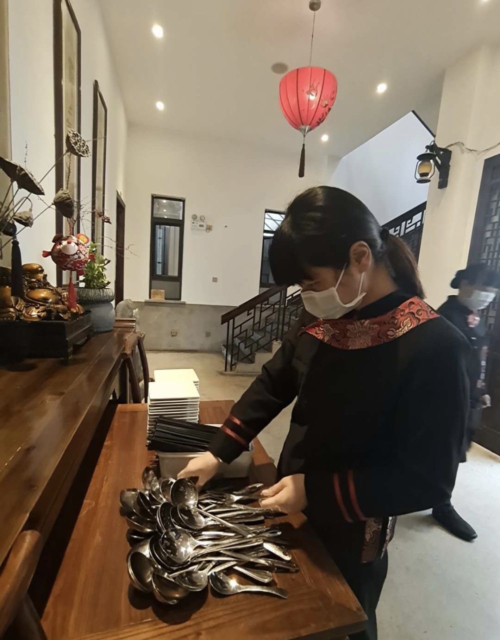 員工正在消毒整理新餐具,準(zhǔn)備分發(fā)。圖片由受訪者提供