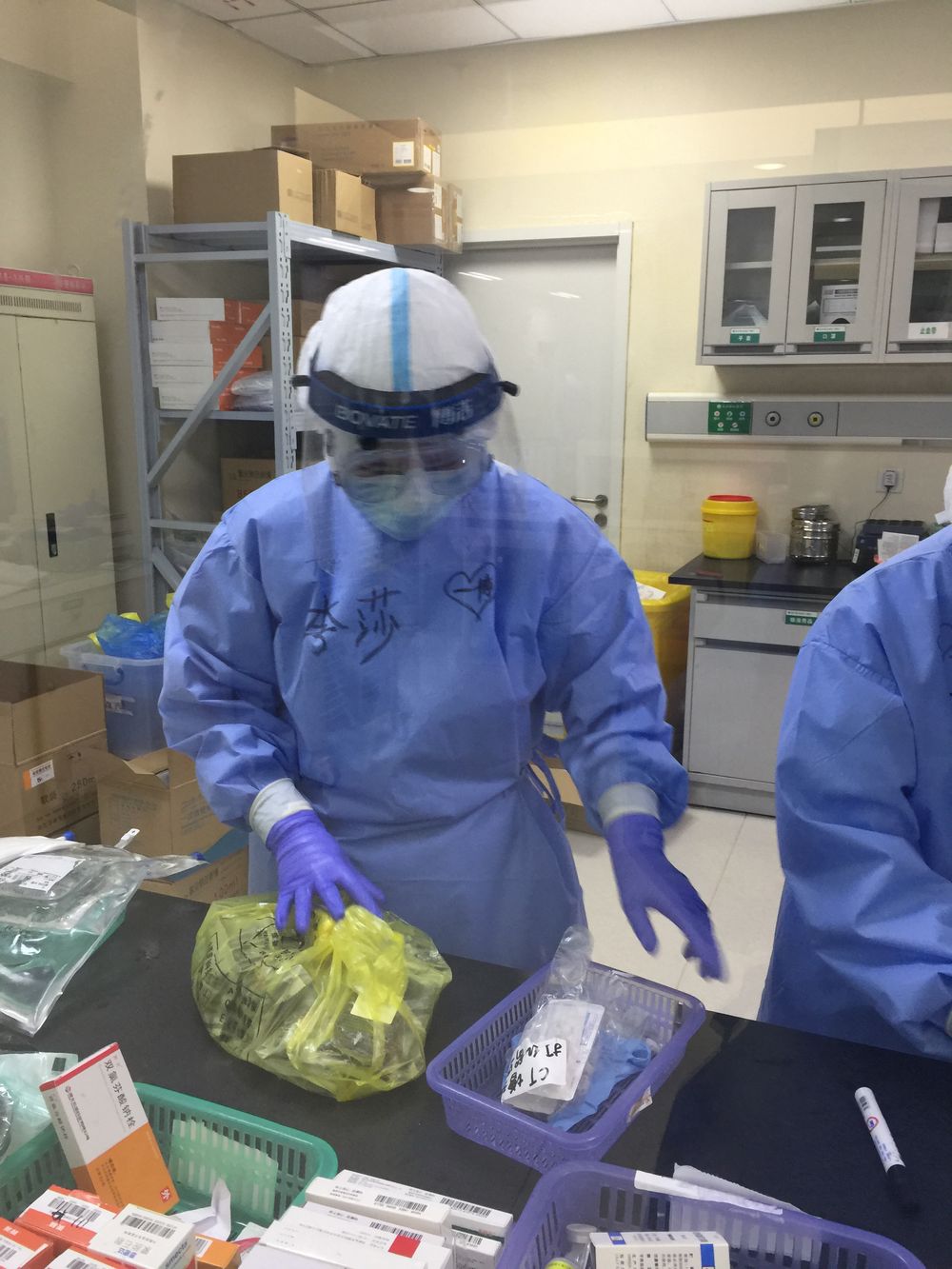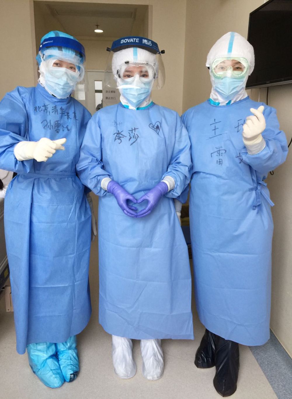 我想了想,有點(diǎn)開玩笑地說:“家人現(xiàn)在都很平安,唯一的心愿是可以見到我最喜歡的偶像王一博?!比缓笸聜兙推鸷逭f要錄下來,并在我的防護(hù)服上寫了四個(gè)大字“一博等我”。