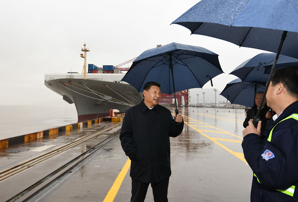 從新華社發(fā)出的現(xiàn)場照片看,總書記在寧波舟山港穿山港區(qū)碼頭上沒有佩戴口罩。↓↓↓