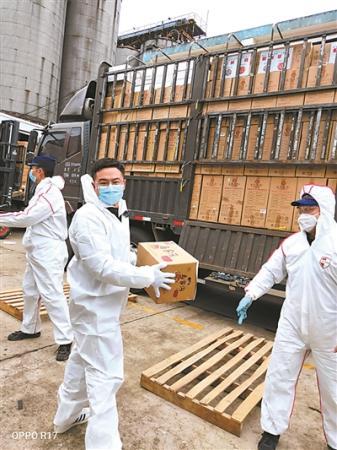 “物資包括口罩、消毒液等醫(yī)療用品,也有能儲存的食物,加起來總共300多噸?!狈鸬墓ぷ骶褪前衍嚿系臇|西搬下來,運到倉庫的指定位置,然后再等相關(guān)機構(gòu)來領(lǐng)物資。