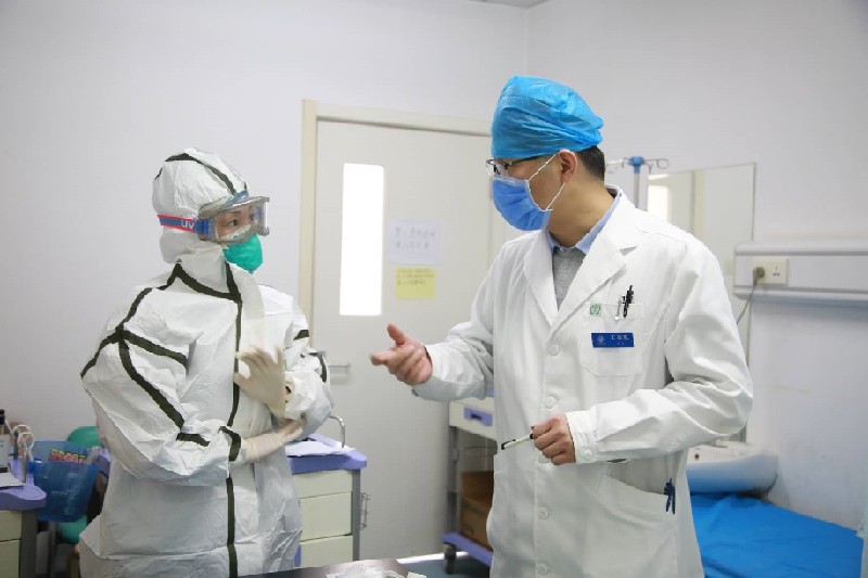 作為科主任,王凌航除了以身作則之外,還做了大量心理疏導(dǎo)工作?!斑€有護(hù)士防護(hù)問題,我告訴她們,采集鼻咽拭子標(biāo)本時,側(cè)著點(diǎn)兒身子?!弊鳛閭魅静<?,在健康科普宣傳的“戰(zhàn)場”上,基層單位督導(dǎo)工作現(xiàn)場中,院內(nèi)會診、危重癥患者查房討論中,到處可見他忙碌的身影。