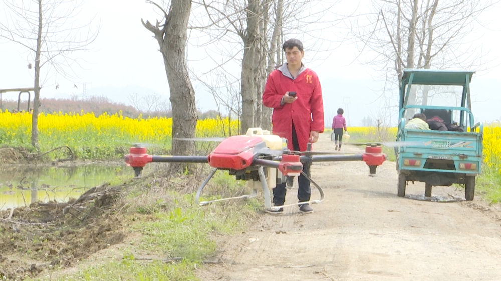 在柴桑區(qū)曹氏家庭農(nóng)場,農(nóng)場主曹敬民正熟練地操作植保無人機。曹敬民告訴記者,這次疫情對農(nóng)場生產(chǎn)影響較小,通過政府信息化平臺和農(nóng)技專家的幫扶支持,對今年農(nóng)場增收充滿信心。