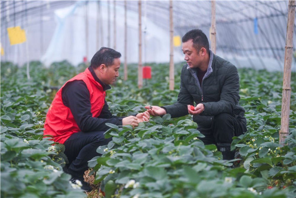 農(nóng)技人員(左)在對(duì)種植戶進(jìn)行技術(shù)指導(dǎo) 徐昱 攝