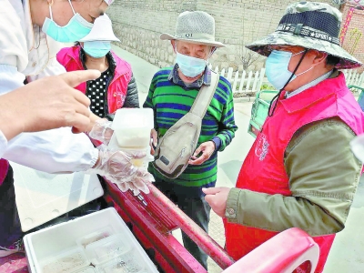 永寧鎮(zhèn)孔化營(yíng)村,工作人員正向老人分發(fā)當(dāng)日午飯。