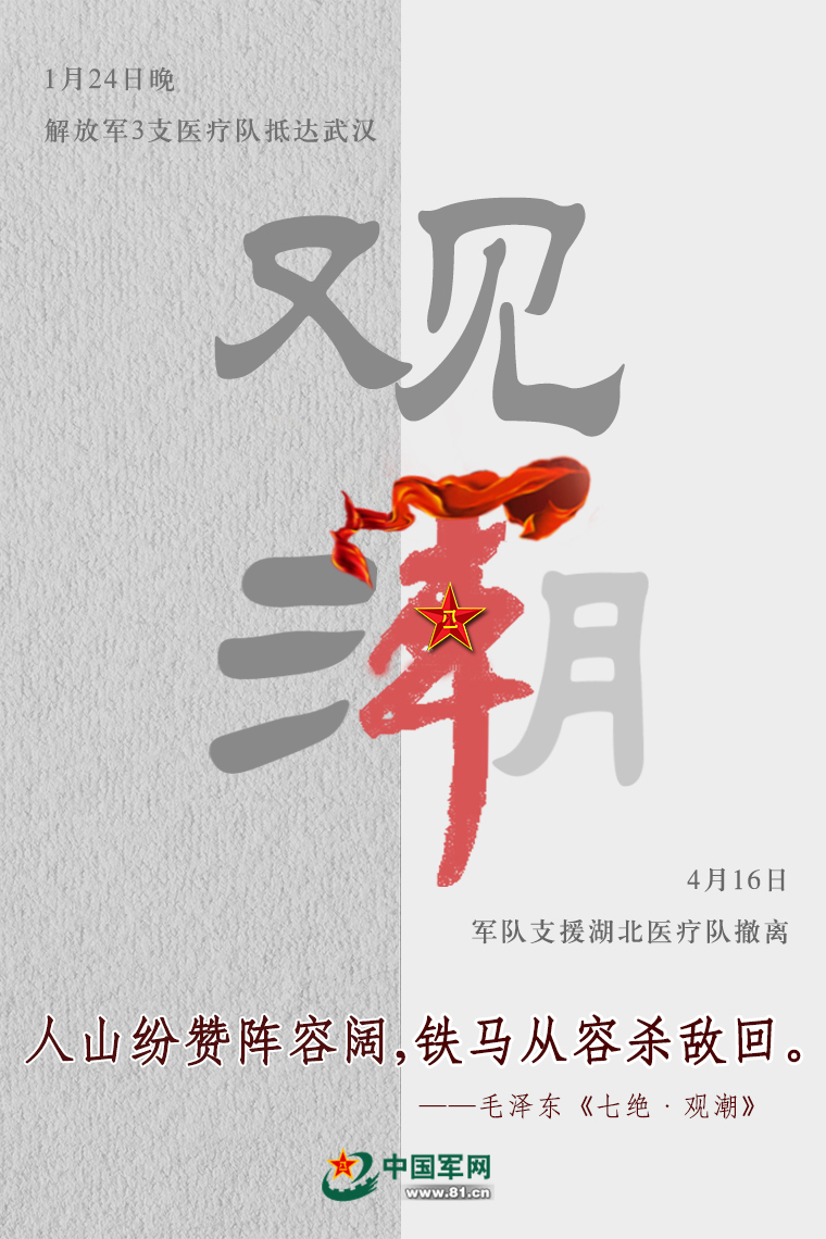 經(jīng)中央軍委主席習近平批準,軍隊支援湖北醫(yī)療隊在圓滿完成承擔的武漢火神山醫(yī)院、武漢市泰康同濟醫(yī)院、湖北省婦幼保健院光谷院區(qū)確診患者醫(yī)療救治任務后,采取民航包機和鐵路運輸投送方式,陸續(xù)離開武漢完成回撤。