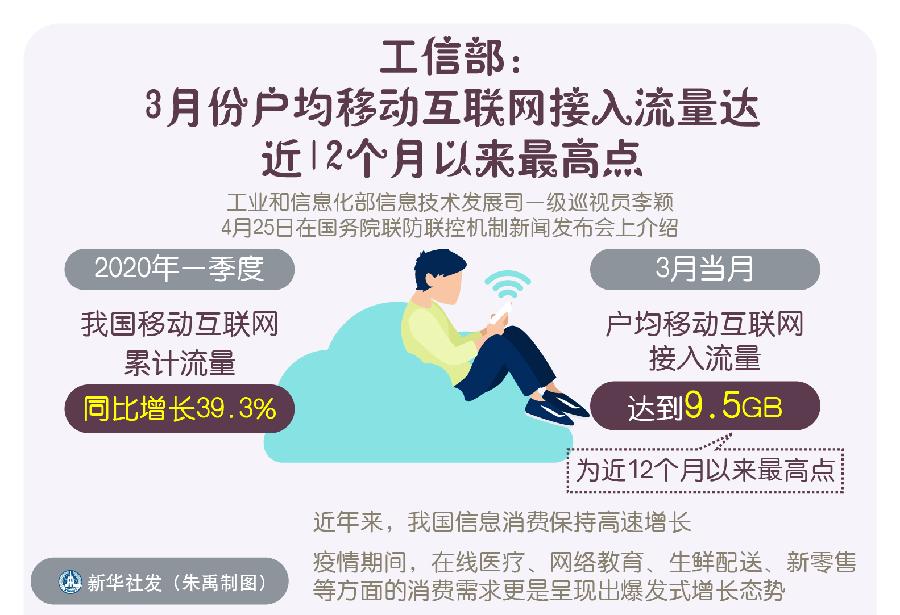 新華社北京4月25日電(記者王希、董瑞豐)今年一季度,我國移動互聯(lián)網(wǎng)累計(jì)流量同比增長39.3%,3月當(dāng)月戶均移動互聯(lián)網(wǎng)接入流量達(dá)到9.5GB,為近12個月以來最高點(diǎn)。
