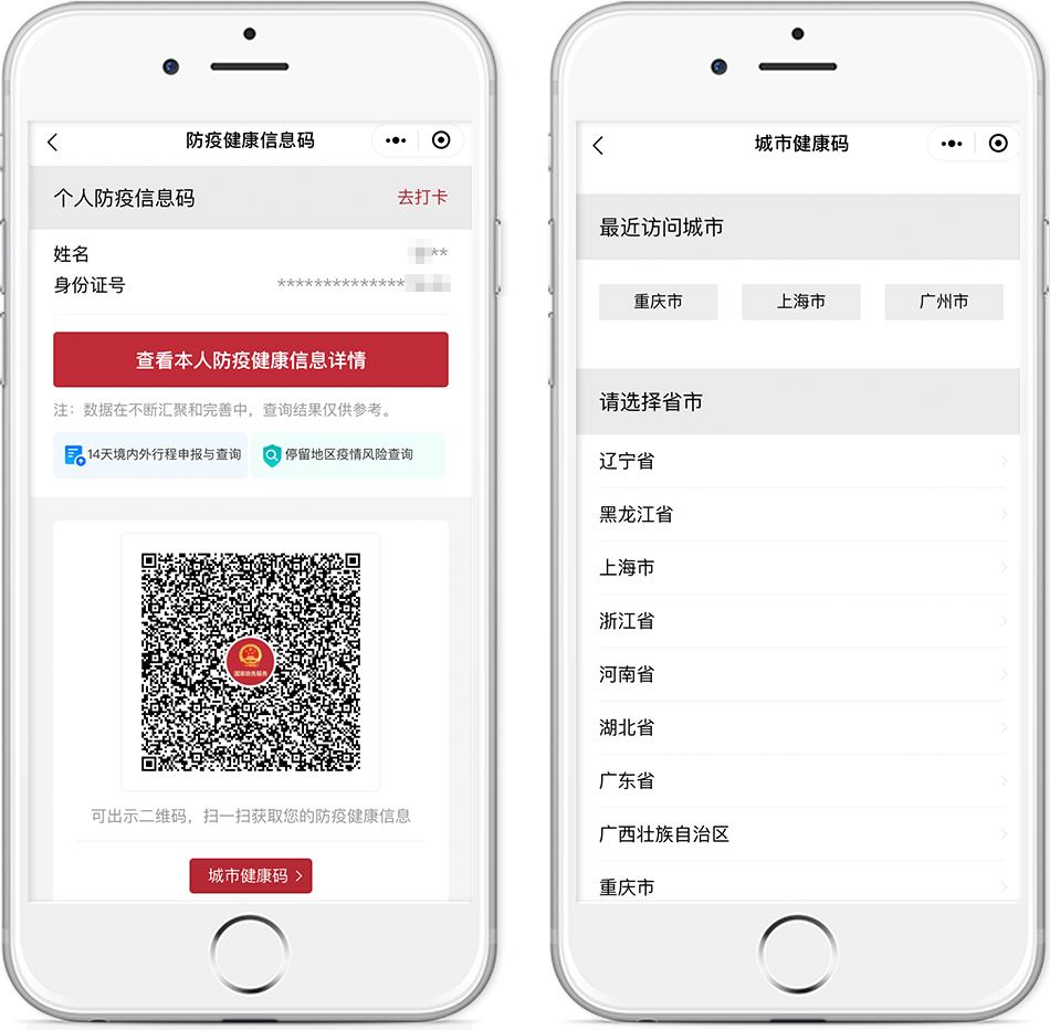 “防疫健康信息碼”為你的跨省出行保駕護(hù)航,關(guān)聯(lián)全國31個省(區(qū)、市)及新疆生產(chǎn)建設(shè)兵團(tuán)防疫“健康碼”信息,實(shí)現(xiàn)了信息共享和互通互認(rèn),全國絕大部分地區(qū)可“一碼通行”。