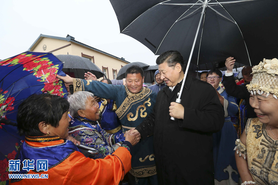 2014年春節(jié)前夕,習(xí)近平來(lái)到內(nèi)蒙古,看望慰問(wèn)各族干部群眾。他來(lái)到錫林浩特市寶力根蘇木(鄉(xiāng))冬季那達(dá)慕,同牧民們一起觀摔跤,看賽馬,聽長(zhǎng)調(diào),賞歌舞。在傳統(tǒng)的“五畜祈福”儀式上,他按照蒙古族習(xí)俗,用無(wú)名指蘸上銀碗盛著的鮮牛奶彈了三下,祝福來(lái)年風(fēng)調(diào)雨順,五畜興旺,人民幸福安康。