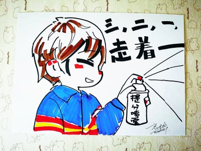 高二時(shí),這一傳統(tǒng)得以延續(xù)。今年,從給學(xué)長(zhǎng)們吶喊加油,輪到了為自己和同學(xué)們鼓勁打氣。在漫畫的創(chuàng)作風(fēng)格上,張亦萱也做了調(diào)整?!爸皭坌牡脑貢?huì)更多一些,今年會(huì)更活潑一些,希望能讓人看了更輕松。”張亦萱說(shuō),自己從小學(xué)開始學(xué)美術(shù),對(duì)她來(lái)說(shuō),畫畫不難,難的是創(chuàng)意和構(gòu)思。最開始畫的時(shí)候,想法很多,從網(wǎng)上獲得了不少靈感;后來(lái),為了不跟別人重復(fù),她開始翻各種表情包,力求好玩兒有趣。