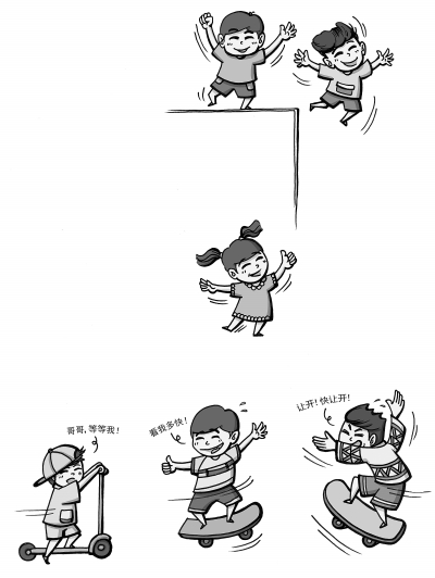 “可我說了沒用,這幫孩子天天交流,平衡車、滑板,回家就要?!蔽湎壬寡裕⒆觽兣时鹊谋澈?,是“能玩的太少”的現(xiàn)狀。尤其是今年開春后,不少家長都給孩子添置了自行車等設(shè)備?!叭思医o買你不買,孩子心里不舒服。”有時拗不過孩子,自己只能就范。