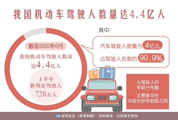新華社北京7月18日電(記者劉奕湛)公安部交管局日前發(fā)布數據顯示,截至2020年6月,我國機動車駕駛人數量達4.4億人,上半年新領證駕駛人728萬人。