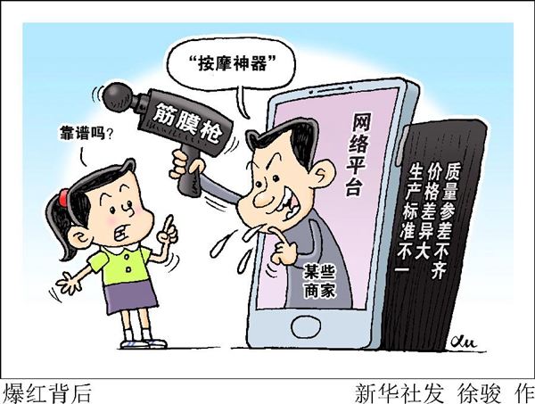 筋膜槍似乎“一夜”出圈成為網(wǎng)紅產(chǎn)品。今年“6.18”網(wǎng)絡(luò)購物平臺活動首日,某品牌筋膜槍開售1小時(shí)即突破百萬元銷售額。在某直播平臺,一位網(wǎng)絡(luò)達(dá)人首次帶貨就售出5000多件,累計(jì)銷售額近500萬元。還有明星在視頻平臺推廣,1萬余件產(chǎn)品幾乎“秒搶”。