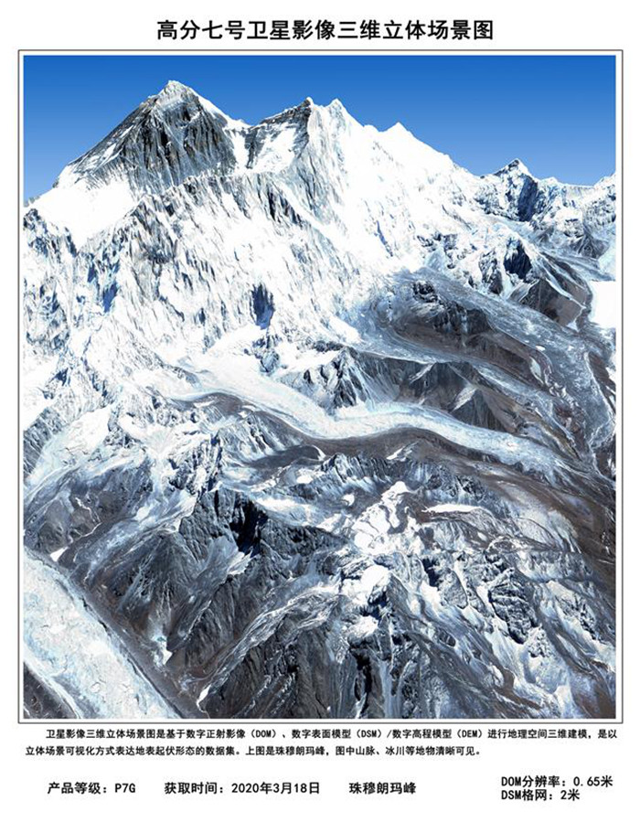 這是高分七號(hào)衛(wèi)星于2020年3月18日獲取的珠穆朗瑪峰三維立體場(chǎng)景圖。? 新華社發(fā)(國(guó)家航天局提供)