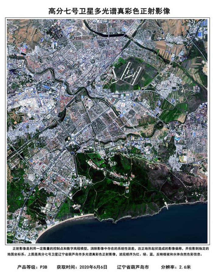 這是高分七號(hào)衛(wèi)星于2020年6月6日獲取的遼寧省葫蘆島市的多光譜真彩色正射影像。 新華社發(fā)(國(guó)家航天局提供)