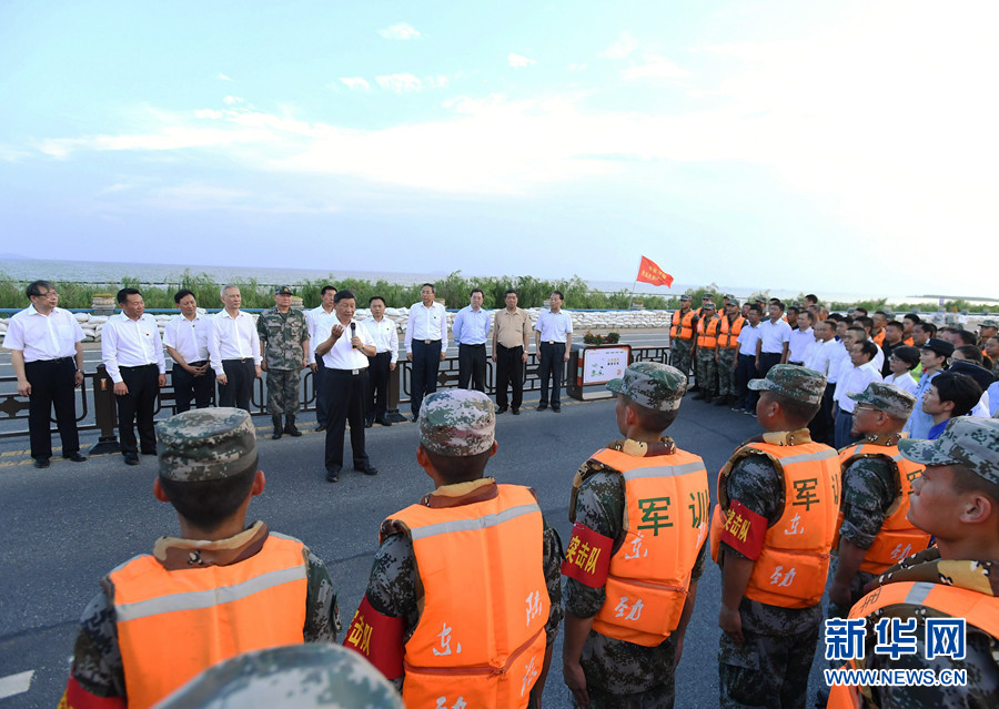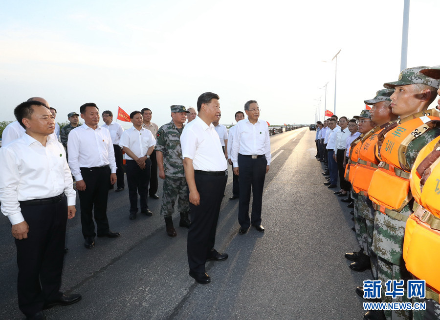 大堤上,習近平親切看望慰問了在防汛抗洪救災斗爭中犧牲同志的家屬、防汛抗洪一線人員、先進典型代表和參加抗洪搶險的部隊官兵,并向全國奮戰(zhàn)在防汛抗洪救災一線的同志們表示誠摯的問候。他強調,今年入汛以來,南北方江河湖泊接連出現(xiàn)超警戒水位險情。廣大干部群眾和人民解放軍、武警官兵堅決響應黨和政府號召,發(fā)揚不怕累苦、不怕疲勞、不怕犧牲的精神斗志,堅守在防汛抗洪救災第一線,涌現(xiàn)了許多先進典型和感人事跡,展現(xiàn)了中國人民眾志成城、頑強拼搏、敢于勝利的英雄氣概,書寫了洪水無情人有情的人間大愛。黨和人民感謝你們!
