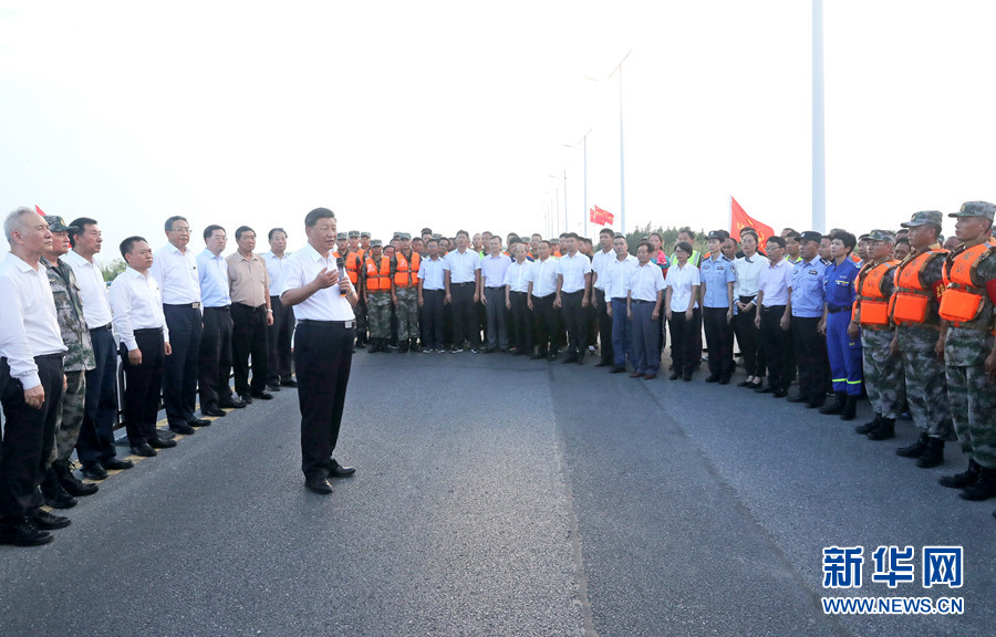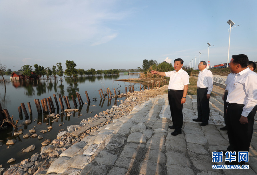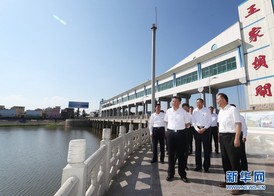 8月18日至21日,中共中央總書記、國家主席、中央軍委主席習近平在安徽省考察。這是18日下午,習近平在阜陽市阜南縣王家壩閘考察,了解安徽省防汛工作及王家壩開閘分洪情況。 新華社記者 王曄 攝