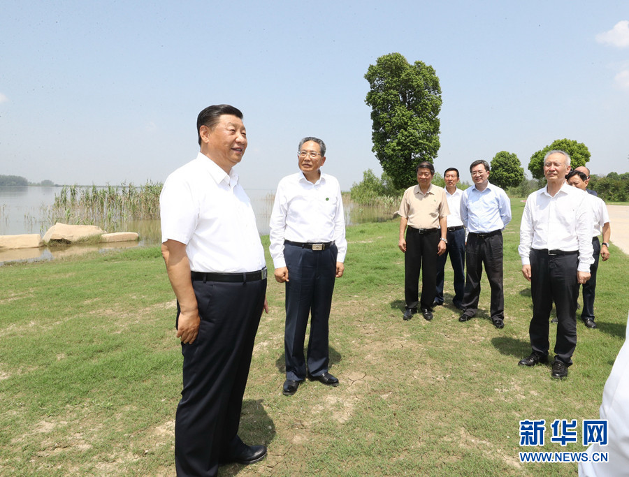 8月18日至21日,中共中央總書記、國家主席、中央軍委主席習近平在安徽省考察。這是19日上午,習近平在馬鞍山市薛家洼生態(tài)園,察看長江水情水勢和岸線生態(tài)環(huán)境。 新華社記者 鞠鵬 攝