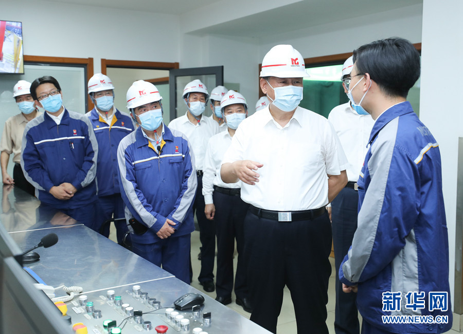 8月18日至21日,中共中央總書記、國家主席、中央軍委主席習近平在安徽省考察。這是19日上午,習近平在馬鞍山市中國寶武馬鋼集團優(yōu)質合金棒材車間考察,了解企業(yè)復工復產(chǎn)和經(jīng)營情況。 新華社記者 王曄 攝
