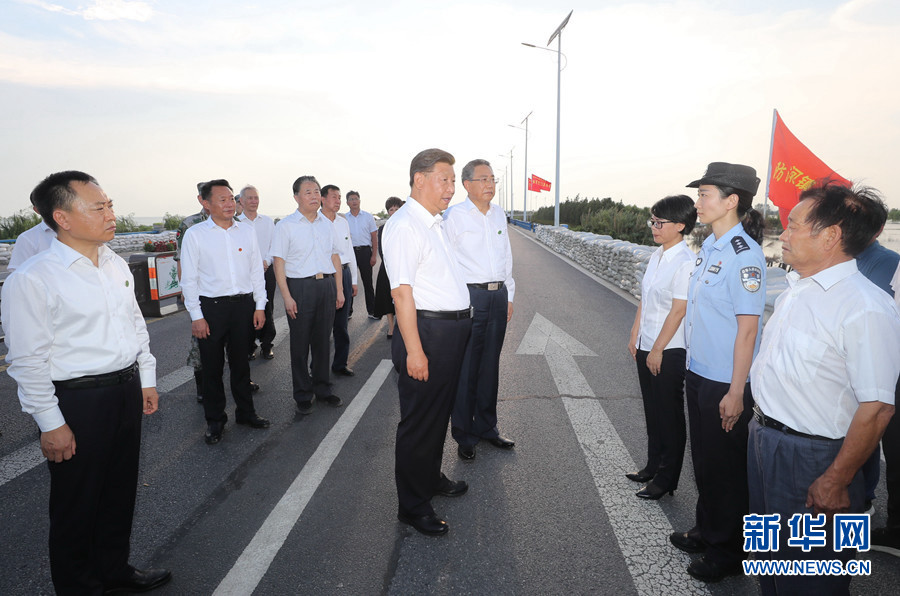 19日下午,習近平來到合肥市肥東縣十八聯(lián)圩生態(tài)濕地蓄洪區(qū)巢湖大堤羅家疃段考察。今年入汛以來,巢湖水位多次突破歷史極值,合肥市主動啟用十八聯(lián)圩及周邊圩區(qū)蓄洪。習近平仔細察看巢湖水勢水情,聽取環(huán)巢湖主要圩口分洪及周邊濕地蓄洪、巢湖綜合治理情況匯報,了解防汛物資和大堤加固情況。他強調,要堅持濕地蓄洪區(qū)的定位和規(guī)劃,盡快恢復生態(tài)濕地蓄洪區(qū)的行蓄洪功能和生態(tài)保護功能。他指出,當前,南方有關地方要繼續(xù)抓好防汛救災工作,同時要嚴防次生災害。北方有關地方要對可能發(fā)生的汛情加強警戒和防范,全面落實防汛救災各項工作,確保安全度汛,確保人民群眾生命財產(chǎn)安全。