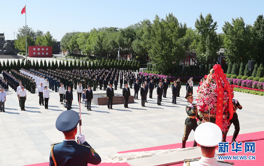 9月3日上午,習近平、李克強、栗戰(zhàn)書、汪洋、王滬寧、趙樂際、韓正、王岐山等黨和國家領(lǐng)導人來到中國人民抗日戰(zhàn)爭紀念館,出席紀念中國人民抗日戰(zhàn)爭暨世界反法西斯戰(zhàn)爭勝利75周年向抗戰(zhàn)烈士敬獻花籃儀式。 新華社記者 丁林 攝