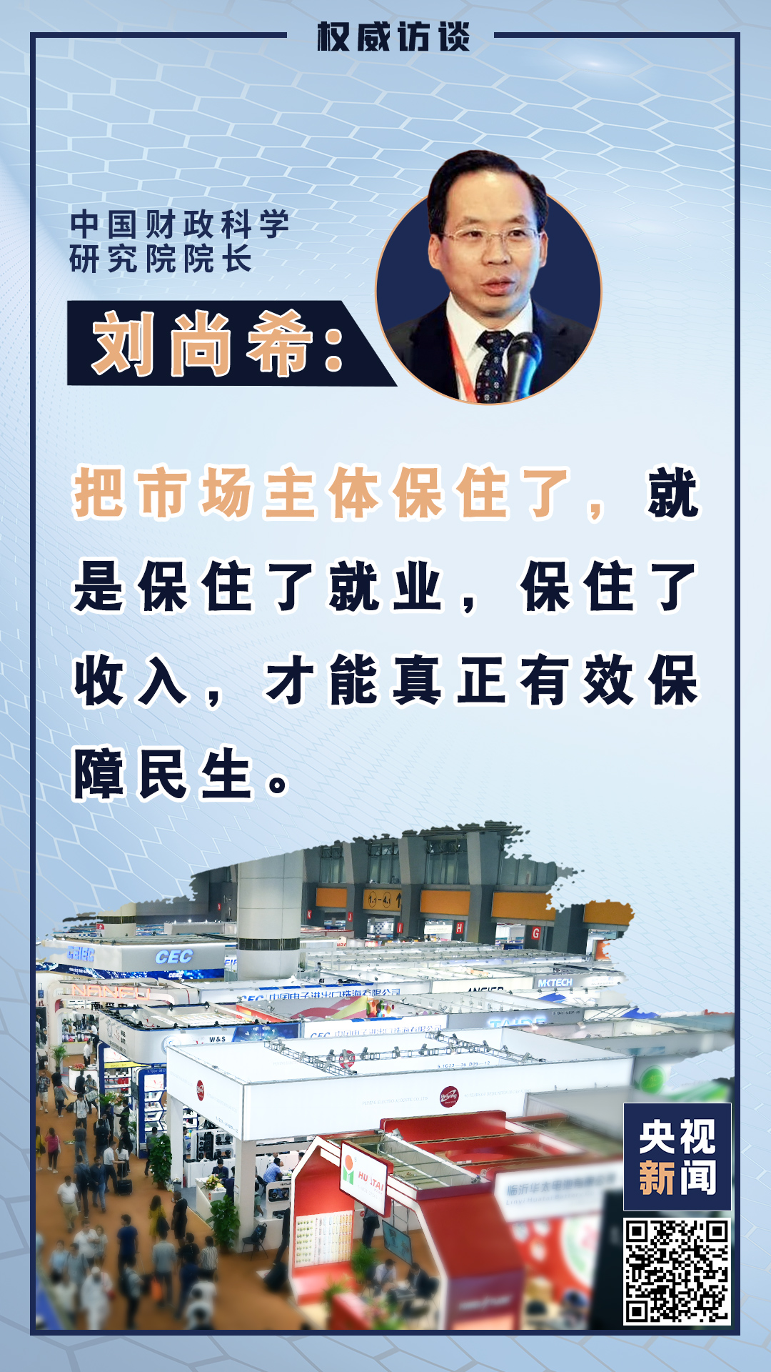 市場主體是經(jīng)濟(jì)的力量載體,保市場主體就是保社會(huì)生產(chǎn)力。在當(dāng)前經(jīng)濟(jì)形勢(shì)下,如何保市場主體來助力加快形成以國內(nèi)大循環(huán)為主體、國內(nèi)國際雙循環(huán)相互促進(jìn)的新發(fā)展格局?今天權(quán)威訪談來看記者對(duì)中國財(cái)政科學(xué)研究院院長劉尚希的專訪。