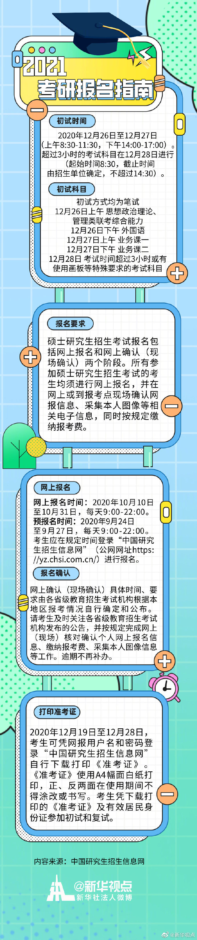 今天起至10月31日,2021年全國碩士研究生招生考試開始正式報名。考生們可在每天9:00至22:00登錄“全國碩士研究生招生考試網上報名平臺”進行報名,這份考試和報名安排?轉給需要的TA吧! ?????
