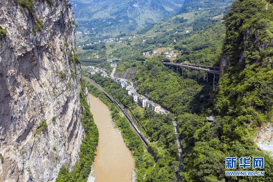在云南省昭通市鹽津縣豆沙關,五尺道、關河水道、內昆鐵路、G247公路及G85渝昆高速5條不同時期的交通線路以幾乎并行的姿態(tài)呈現眼前(8月10日攝,無人機照片)。 新華社記者 江文耀 攝