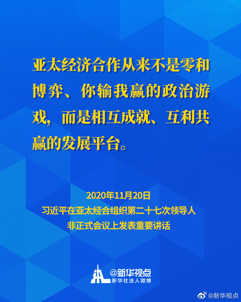 11月20日,國(guó)家主席習(xí)近平在亞太經(jīng)合組織第二十七次領(lǐng)導(dǎo)人非正式會(huì)議上發(fā)表重要講話。一起來(lái)看習(xí)主席的APEC金句↓↓