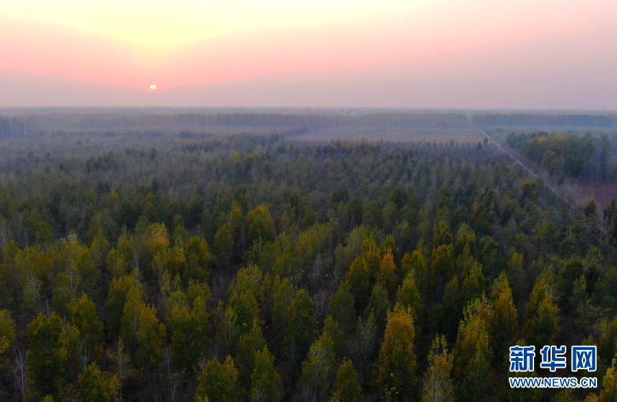 這是11月6日在河南省商丘市民權(quán)縣拍攝的民權(quán)林場(無人機(jī)照片)。新華社記者 郝源 攝