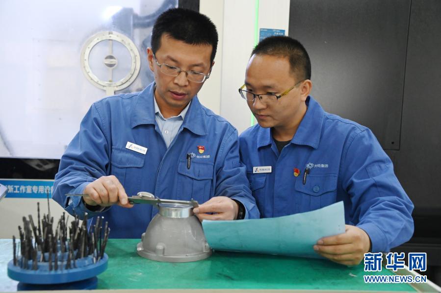 11月26日,梁兵在河南平原光電有限公司車間內(nèi)為工作室成員講解操作要點。新華社記者 張浩然 攝