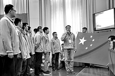 嫦娥四號(hào)探測(cè)器試驗(yàn)隊(duì)成員在動(dòng)員會(huì)上宣誓。資料圖片
