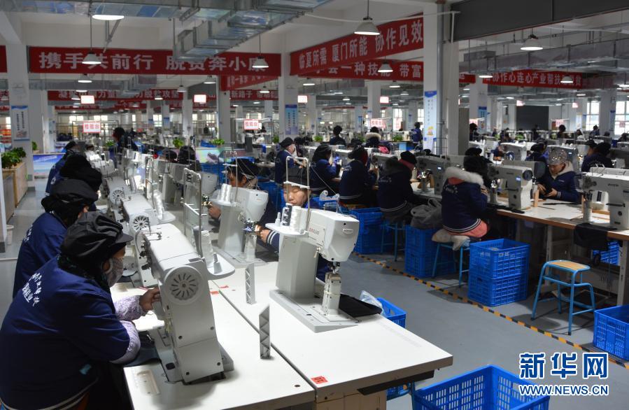 工人在廈琳鞋業(yè)產(chǎn)業(yè)園扶貧車間制鞋(12月1日攝)。新華社記者 顏之宏 攝