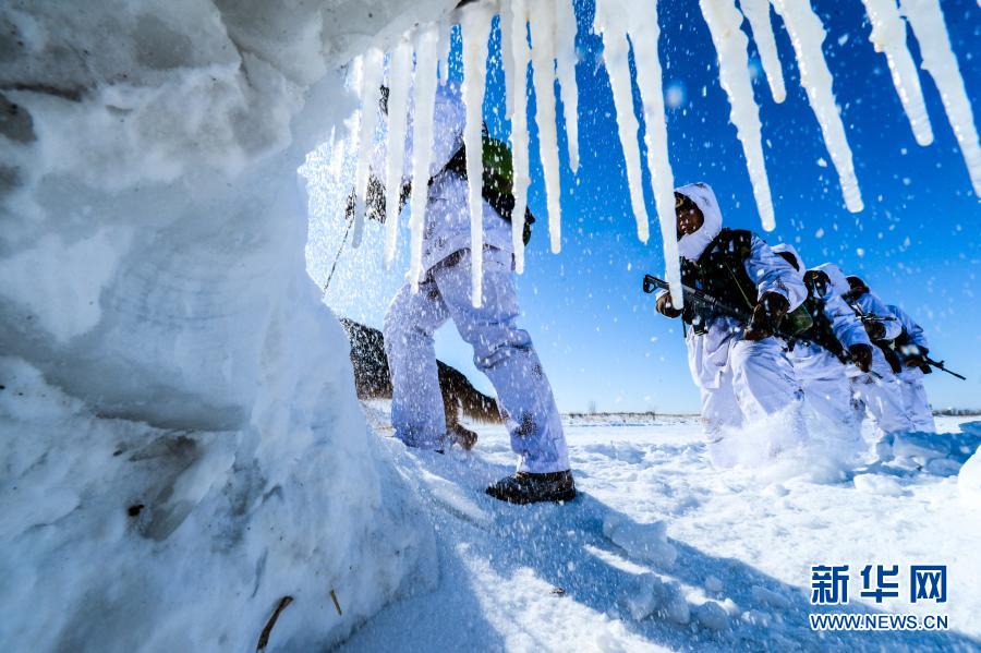 東極哨所官兵組織摩托雪橇和執(zhí)勤分隊進行聯合戰(zhàn)術演練(11月4日攝)。新華社發(fā)(李寶成 攝)