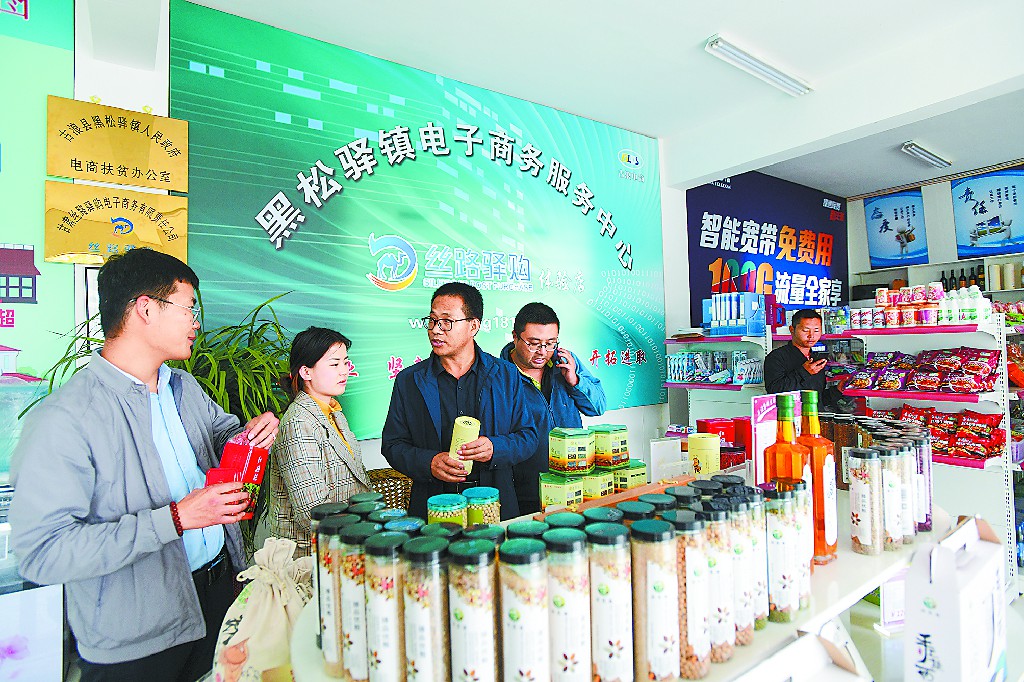 ????張開青(中)在電商服務(wù)中心了解農(nóng)產(chǎn)品銷售情況。呂亞龍 攝