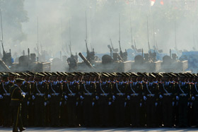- 千人軍樂團(tuán)、合唱團(tuán)助威勝利日大閱兵