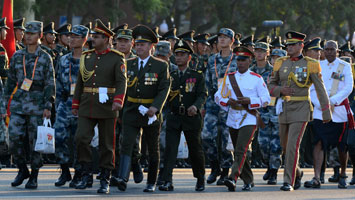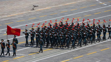 這是我國首次邀請外軍參加閱兵。白俄羅斯、古巴、埃及、哈薩克斯坦、吉爾吉斯斯坦、墨西哥、蒙古國、巴基斯坦、塞爾維亞、塔吉克斯坦、俄羅斯等11國派方隊(duì)參閱,每個方隊(duì)參閱人數(shù)為75人左右。阿富汗、柬埔寨、斐濟(jì)、老撾、瓦努阿圖、委內(nèi)瑞拉等6國派代表隊(duì)參閱,每個代表隊(duì)參閱人數(shù)為7人左右。