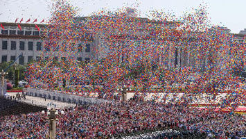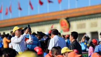 - 李克強(qiáng)、張德江、俞正聲、劉云山、王岐山、張高麗登上城樓,江澤民、胡錦濤登上城樓