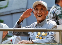抗戰(zhàn)老同志乘車方隊(duì):國共兩黨抗戰(zhàn)老兵共同參閱