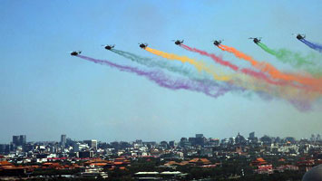 - 70架直升機(jī)組成的強(qiáng)大編隊(duì)最后通過天安門廣場上空