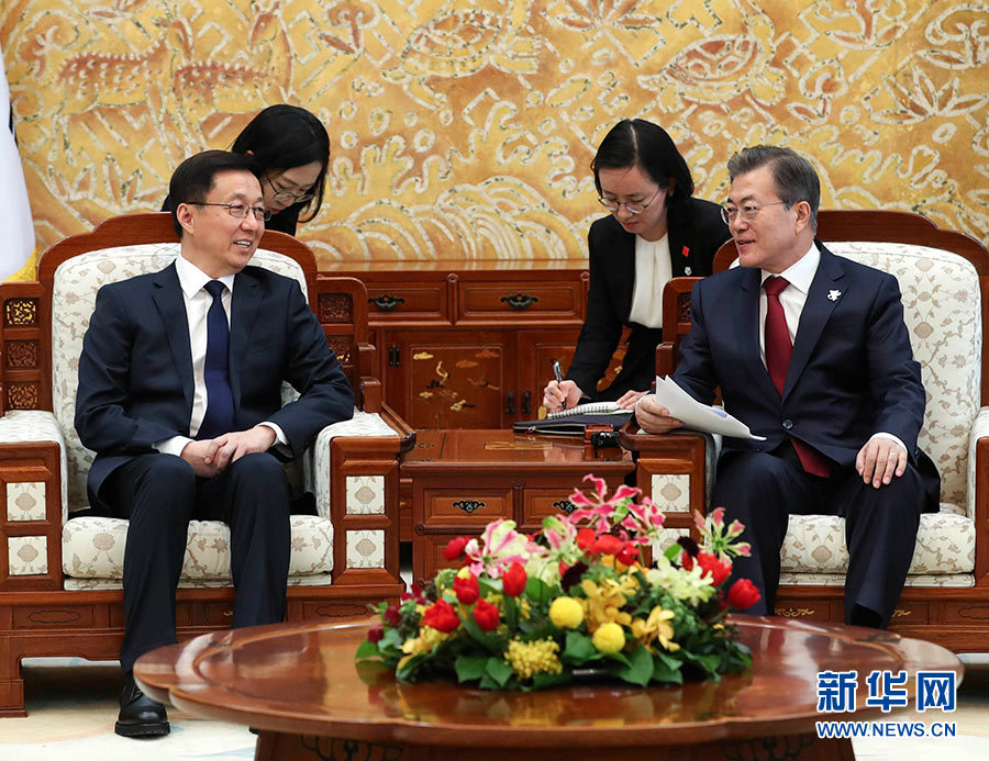 韓正表示,近期朝鮮半島形勢發(fā)生積極變化,韓朝雙方以平昌冬奧會為契機重啟對話,開展合作,南北關系改善取得進展。中方支持韓朝雙方和解合作,希望有關各方相向而行,為進一步緩和半島形勢、推動半島問題政治解決進程共同作出努力。