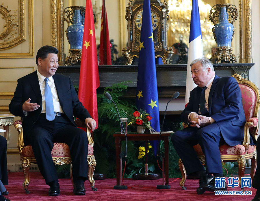 3月26日,國(guó)家主席習(xí)近平在巴黎會(huì)見法國(guó)參議長(zhǎng)拉爾歇。 新華社記者丁海濤攝