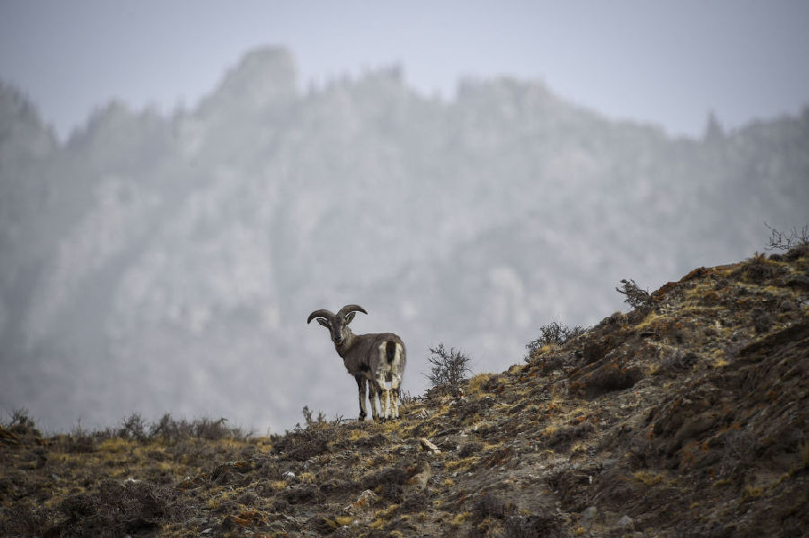 賀蘭山國家級自然保護區(qū)的巖羊(新華社記者馮開華 攝)