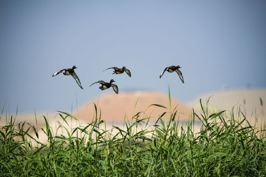 寧夏石嘴山市平羅縣沙湖景區(qū)(新華社記者馮開華 攝)